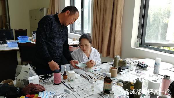 在修復這兩包碎片的時候,郭漢中的恩師楊曉鄔來三星堆,看到自己的徒弟正在石膏模具上用刻刀修整翻制的紋飾,對郭漢中說了一句讓人動容的話,“趁年輕眼睛好,多修些好東西”。因為石膏模具是白色的,長期在模具上修整、雕刻紋飾,時間久了眼睛會花,會流眼淚,上了年紀眼睛老花,想再把模具上細膩的紋飾修刻好,就會心有余而力不足。