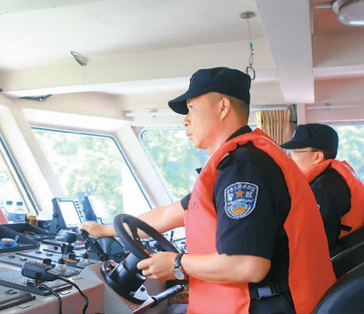 53911艇操舵手羅建春在駕駛船艇。記者 張一琪 攝