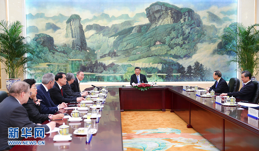 5月15日,國家主席習近平在北京人民大會堂會見博鰲亞洲論壇理事長潘基文。 新華社記者 謝環馳 攝