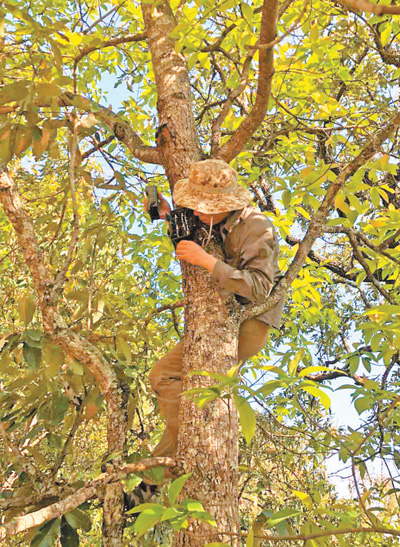 中國科學(xué)院昆明動物研究所研究人員在安放紅外相機(jī),進(jìn)行鳥類監(jiān)測。中國科學(xué)院昆明動物研究所鳥類學(xué)組供圖