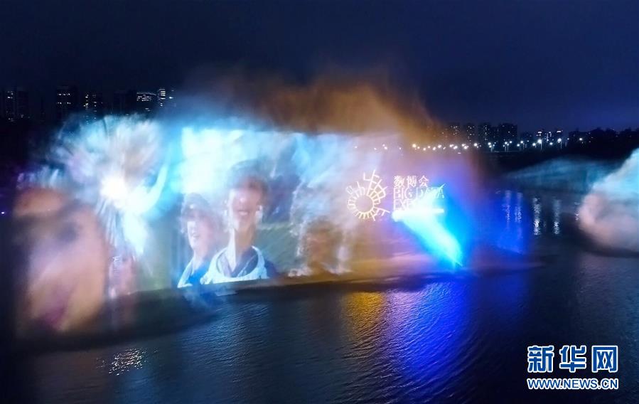 市民在貴陽市觀山湖公園內(nèi)體驗(yàn)數(shù)谷之夜活動(dòng)中的水幕電影(5月22日攝)。新華社記者劉續(xù) 攝