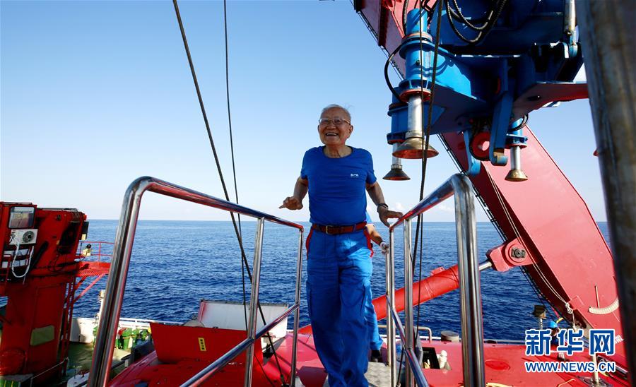 2018年5月13日,汪品先院士從“深海勇士”號載人艙走向母船。新華社記者 張建松 攝
