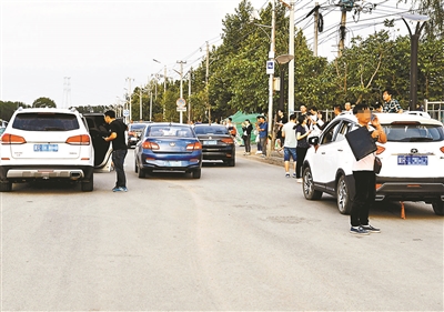 當日18點45分,陸續(xù)有車主將車開走。地鐵站附近的兩側(cè)道路也停滿了等人的外地車,盡管有協(xié)管員不時疏堵,車輛仍然并排停了兩排,導(dǎo)致道路擁堵。盡管處在正在建設(shè)中的城市副中心核心區(qū),但僅從車牌上很難看出北京的跡象。