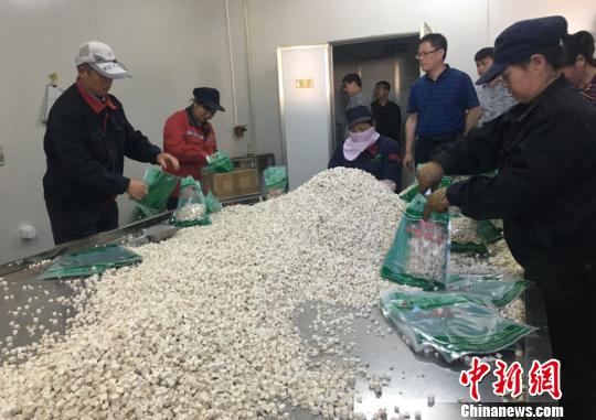 清水縣白沙鄉(xiāng)溫泉村的生物科技有限責任公司為當?shù)剞r(nóng)民免費提供技術指導和種子化肥,既解決銷售渠道問題,又降低種植風險,公司安置貧困戶就業(yè)近20人。圖為當?shù)刎毨粽诎b中藥材。 張婧 攝