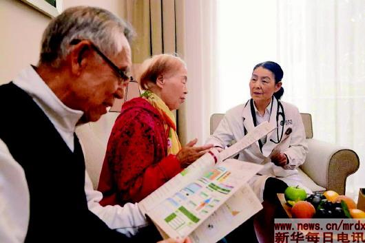 北京恭和苑內的醫(yī)生為老人做定期檢查。 圖片由受訪者提供