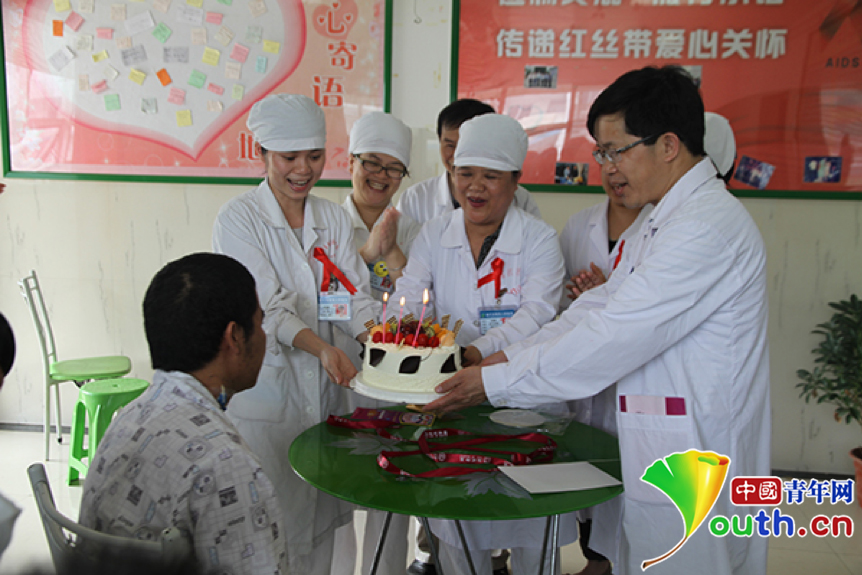 杜麗群和同事們一起給艾滋病患者過生日。廣西南寧市第四人民醫院供圖