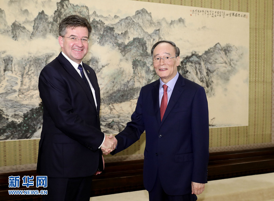 7月2日,國家副主席王岐山在北京中南海會見第72屆聯合國大會主席萊恰克。 新華社記者 丁林 攝