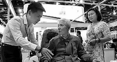第七屆中國國際養(yǎng)老服務(wù)業(yè)博覽會(huì)現(xiàn)場,一款理療設(shè)備吸引了老年觀眾的關(guān)注。新華社發(fā)