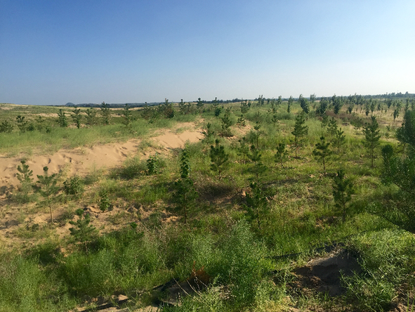 現(xiàn)在正處三北工程第五期階段,王海英說,當下科左后旗所剩余的沙地造林地段,地理位置偏遠,相比以前來說,難度加大。一是交通不方便,以前可以機器造林,現(xiàn)在只能人工用車子拉進沙地。二是以前可以裸栽,現(xiàn)在需帶土容器苗栽培,為了保護好樹根不折斷。三是澆水困難。造林當年需在每三四百畝地之間打一口4—6寸口徑、深二十米左右的井,第二年以后就基本可以依靠雨水了。