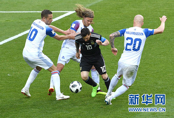 俄羅斯的世界杯之夏,昔日的“平民”球隊(duì)群雄并起,他們敢于跟傳統(tǒng)豪強(qiáng)叫板,把曾經(jīng)的世界杯冠軍得主接連挑落馬下,讓本屆世界杯成為“平民”球隊(duì)展示自己風(fēng)采的舞臺(tái)。圖為6月16日,在俄羅斯世界杯足球賽D組阿根廷隊(duì)對(duì)陣冰島隊(duì)的比賽中,阿根廷隊(duì)球員梅西(右二)受到冰島隊(duì)三名球員包夾。最終,冰島隊(duì)以1比1逼平阿根廷隊(duì)。新華社記者王毓國(guó)攝