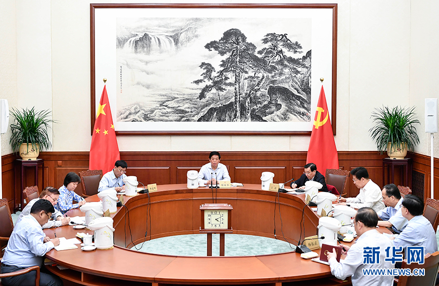 7月16日,全國(guó)人大常委會(huì)黨組在北京召開(kāi)會(huì)議進(jìn)行集體學(xué)習(xí),學(xué)習(xí)習(xí)近平新時(shí)代中國(guó)特色社會(huì)主義思想,以“中國(guó)共產(chǎn)黨的歷史使命”為主題,圍繞“歷史使命、歷史責(zé)任和我們的歷史擔(dān)當(dāng)”進(jìn)行專題討論。全國(guó)人大常委會(huì)委員長(zhǎng)、黨組書(shū)記栗戰(zhàn)書(shū)主持并講話。 新華社記者 殷博古 攝
