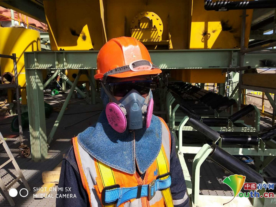 秘魯屬于熱帶沙漠氣候,施工地點完全處于荒漠戈壁,終年寸草不生,一天到晚都是太陽的驕橫和風的霸道。施工一線沒有一處陰涼,污土、細沙隨風卷起,拍打在張松領的臉上,不用幾天,臉上、胳膊上就會褪去一層皮,他和隊友們只能全副武裝。