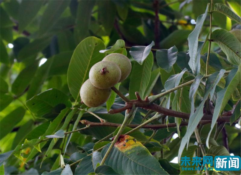 崇仁村長勢喜人的核桃樹已掛果。未來網記者 程婷 攝