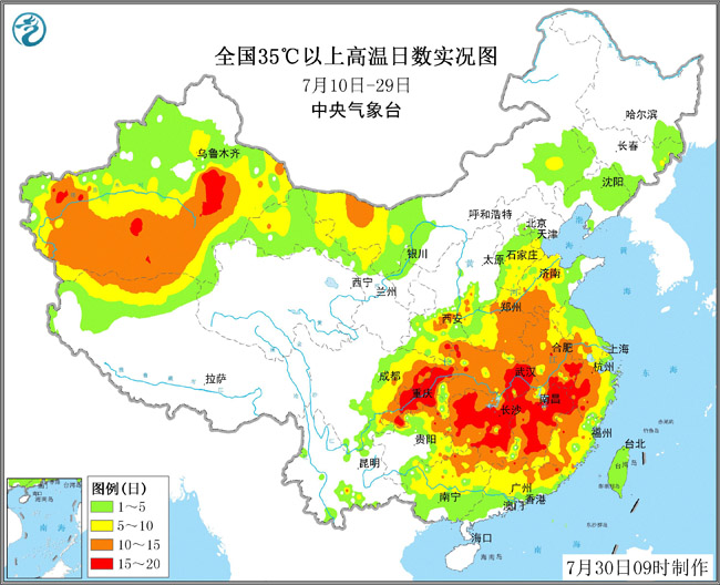 孫軍:7月10日以來,我國中東部地區(qū)出現(xiàn)大范圍持續(xù)性高溫天氣,四川盆地、江南、華南以及黃淮、江淮、江漢、華北東部和南部、東北南部均有影響。其中重慶、湖北、湖南、江西、安徽、浙江中西部等地35℃以上高溫日數(shù)達10~18天。