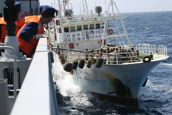 2009年2月9日,執(zhí)行首批護航任務期間,海口艦接護“天裕8號”。