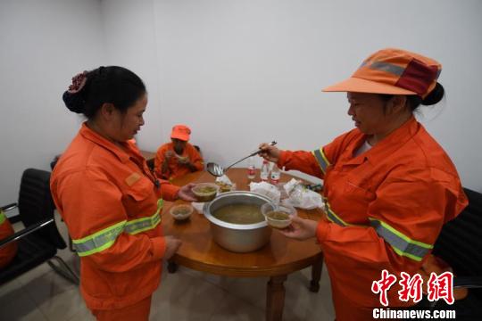 一碗普普通通的綠豆湯,讓環衛工人李紅霞回味了許久?!昂芴?,料足,我再去盛一碗。”李紅霞拿起長柄勺,不忘招呼一句身旁的工友,“你也再來一碗吧,下午有力氣干活兒。”