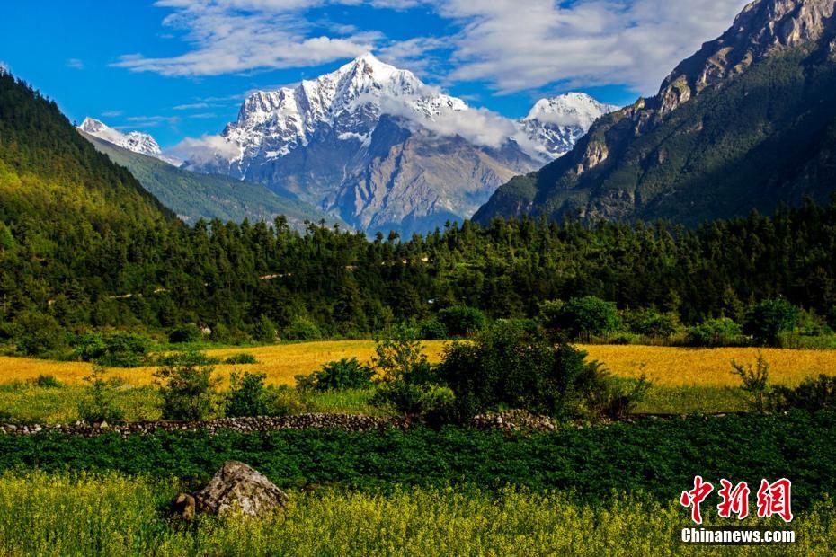 吉隆溝給人最大的感受是驚訝于造物的神奇,讓四季并存在這狹小的山谷間。峽谷綠樹成蔭,恬靜的村莊被綠樹環(huán)抱著,不遠(yuǎn)處能清楚地看見若隱若現(xiàn)的雪山。 楊建 攝