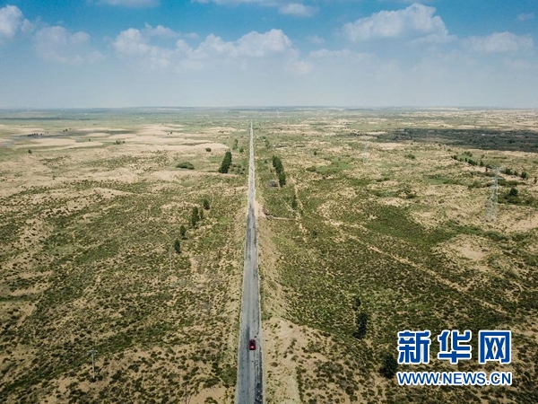 公路在延伸,綠色在鋪展,大漠深處崛起了一道“綠色長廊”。修路與治沙、治窮聯(lián)結(jié)成一體,“死亡之海”由此變成了“希望之海”。