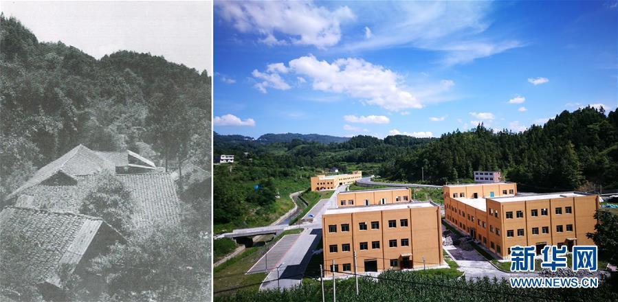 上游務(wù)川縣長江村。拼版照片:左圖為20世紀六七十年代的貴州省遵義市務(wù)川縣浞水鎮(zhèn)長江村;右圖為貴州省遵義市務(wù)川縣浞水鎮(zhèn)長江村新貌(務(wù)川縣委宣傳部提供)。新華社發(fā)(資料照片)