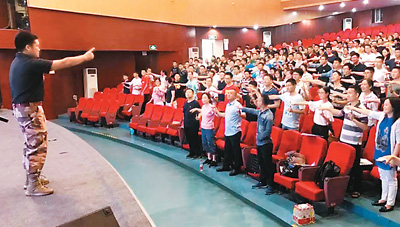 2018“平安留學”行前培訓在貴州、成都等地舉行。圖為西南交通大學培訓會現場,學生和教官在進行互動。出國留學行前培訓微信公眾號供圖