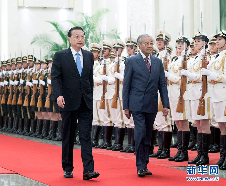 8月20日,國務(wù)院總理李克強在北京人民大會堂同來華進行正式訪問的馬來西亞總理馬哈蒂爾舉行會談。這是會談前,李克強在人民大會堂北大廳為馬哈蒂爾舉行歡迎儀式。 新華社記者 王曄 攝