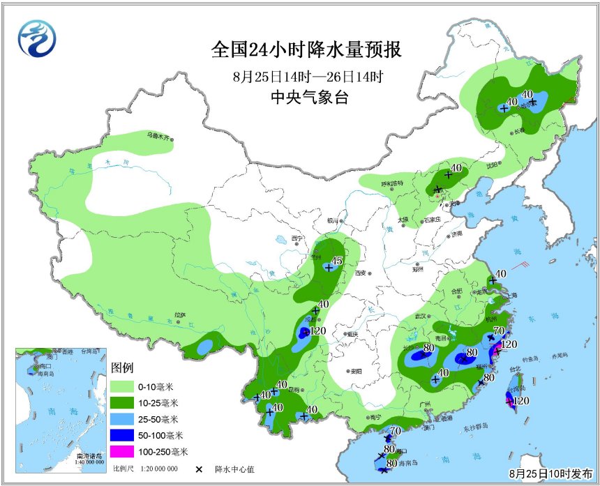 孫軍:由于熱帶低壓登陸后向西移動緩慢,預計25日至27日,受熱帶低壓和季風共同影響,江南和華南將有持續性降雨天氣,部分地區有大到暴雨,局地有大暴雨。浙江東南部、福建西部和南部、江西中南部、湖南中南部、廣西東北部、海南島、臺灣島等地的部分地區累計降雨量有100毫米至200毫米,局地達250毫米至400毫米。上述部分地區將有短時強降雨、雷暴大風等強對流天氣。28日至30日,江南、華南仍將有大到暴雨,局地有大暴雨。