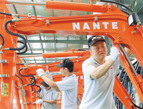江西省高安高新技術產(chǎn)業(yè)園南特機械有限公司的“扶貧車間”里,員工在安裝設備。該市引導企業(yè)通過“企業(yè)+扶貧車間+貧困戶”的形式,帶動有勞動能力的貧困群眾脫貧致富。 彭松林 攝