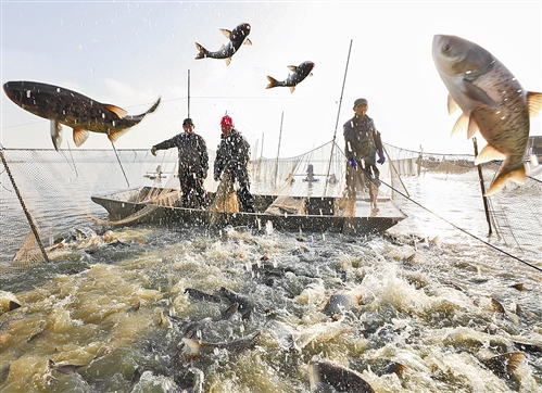 江蘇省盱眙縣河橋鎮(zhèn)漁民在捕魚。盱眙縣不斷探尋水產(chǎn)養(yǎng)殖業(yè)高質量發(fā)展之路,不斷提升當?shù)厝罕娚钏健?周海軍 攝