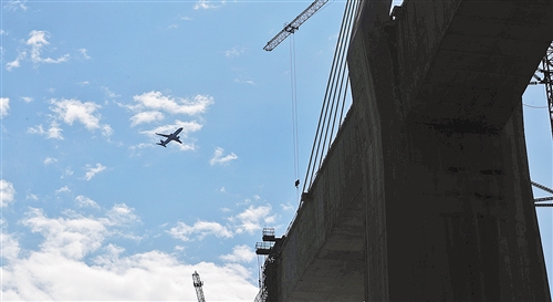 重慶市黔江區(qū)境內(nèi)在建的黔張常鐵路阿蓬江特大橋。近年來,黔江區(qū)加大立體交通建設,有力推動了當?shù)亟?jīng)濟發(fā)展。 楊敏 攝