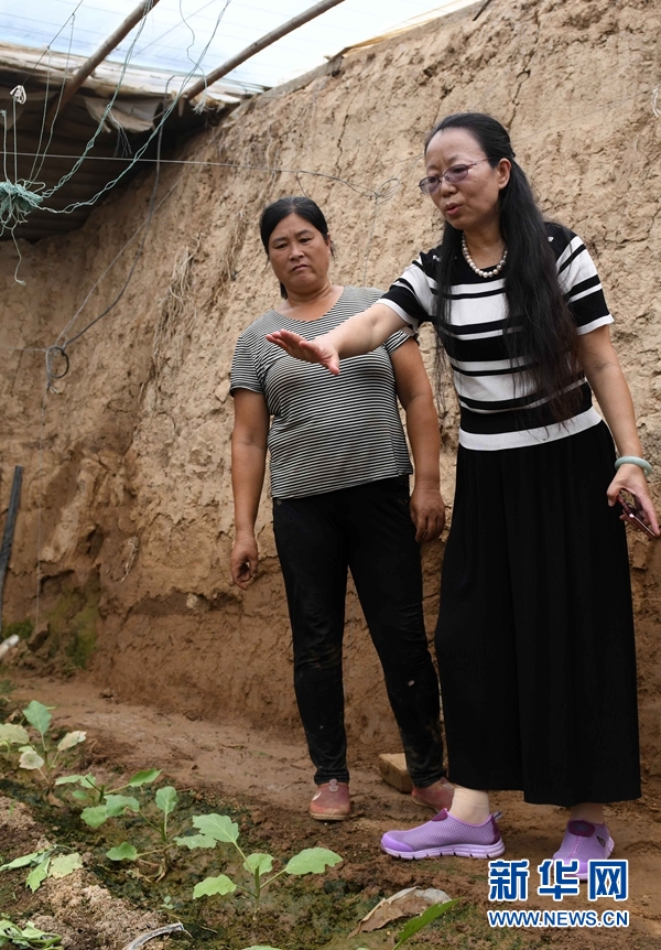 8月30日,中國農(nóng)業(yè)大學教授高紅麗(右)在紀臺鎮(zhèn)前老莊村指導種植戶趙秀蓮做好田間管理。 新華社記者 朱崢 攝