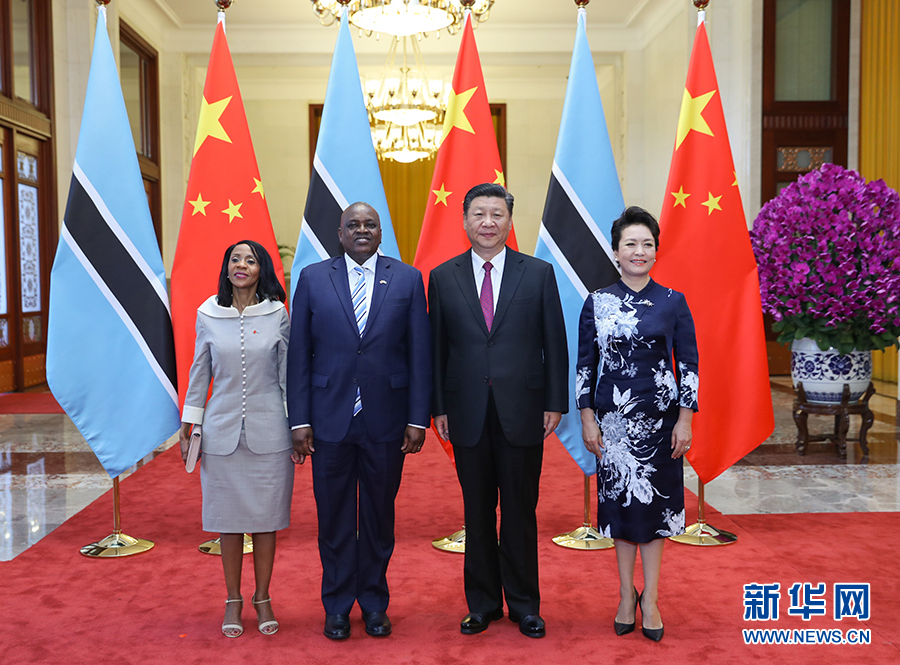 8月31日,國家主席習近平在北京人民大會堂同博茨瓦納總統馬西西舉行會談。這是習近平和夫人彭麗媛同馬西西夫婦合影。 新華社記者 鞠鵬 攝