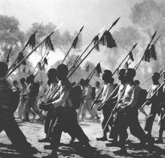 晉察冀抗日根據(jù)地民兵在進行軍事訓(xùn)練
