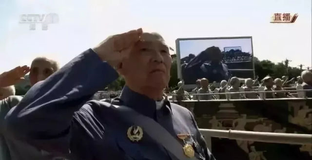 在閱兵儀式上敬了個禮