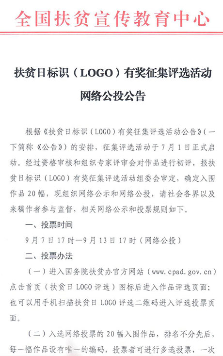 扶貧日標(biāo)識(shí)(LOGO)有獎(jiǎng)?wù)骷u(píng)選活動(dòng)網(wǎng)絡(luò)公投公告