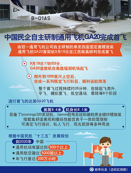圖表:中國民企自主研制通用飛機GA20完成首飛 新華社發(fā) 邊紀紅 制圖