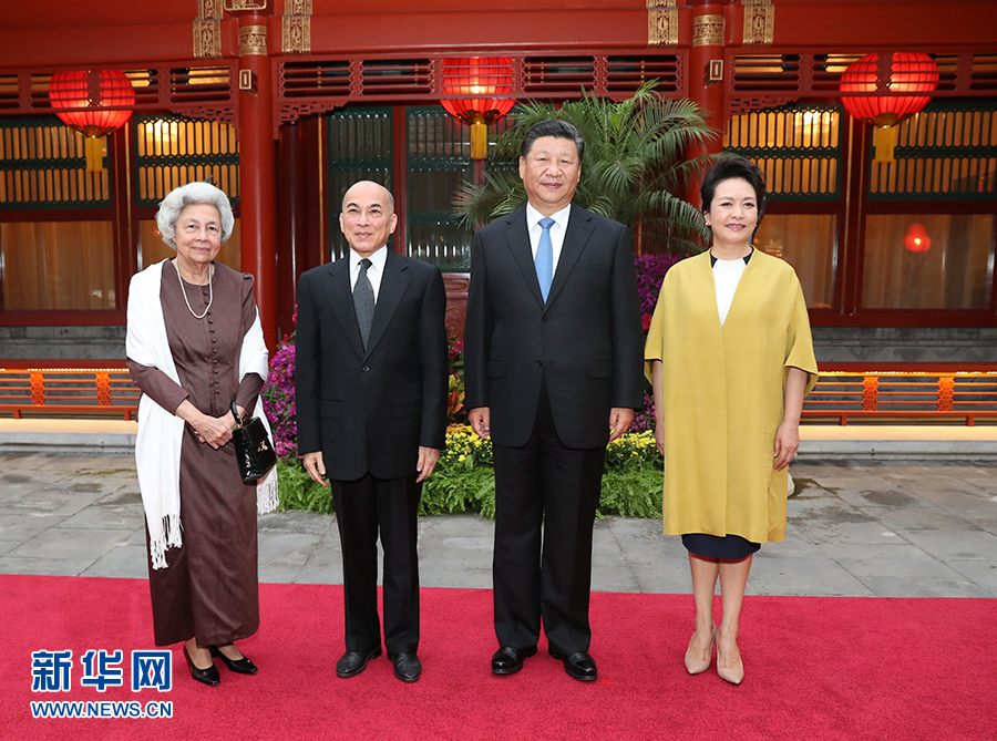 新華社北京9月19日電(記者李忠發)19日晚,在中秋佳節來臨之際,國家主席習近平和夫人彭麗媛在釣魚臺國賓館親切看望正在北京休養的柬埔寨國王西哈莫尼和太后莫尼列。