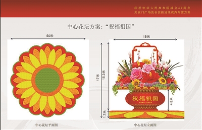 北京青年報記者昨天從北京市花木有限公司獲悉,隨著廣場中心花壇吊裝完成,今天深夜將有上百名工作人員聚集在天安門廣場,把上萬盆鮮花有序地擺放在花籃四周的坡面上,由一品紅、黃色小菊和橙色小菊組成向日葵圖案,襯托出節日的喜慶氛圍。據了解,廣場中心花壇及長安街沿線的10處立體花壇預計將于本周日呈現在市民面前。
