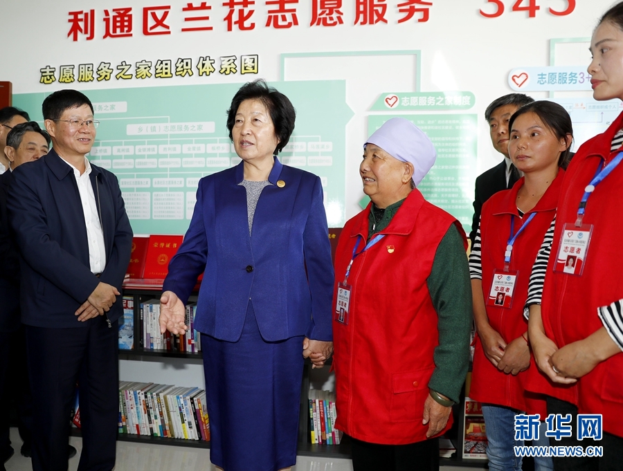 9月21日,中共中央政治局委員、國務院副總理、中央代表團副團長孫春蘭率中央代表團二分團,帶著以習近平同志為核心的黨中央的親切關懷和全國人民的深情厚誼,在吳忠看望慰問各族各界干部群眾,共同慶祝寧夏回族自治區成立60周年。這是孫春蘭在吳忠市利通區勝利鎮永昌社區了解民族團結進步示范社區創建情況。 新華社記者 陳建力 攝
