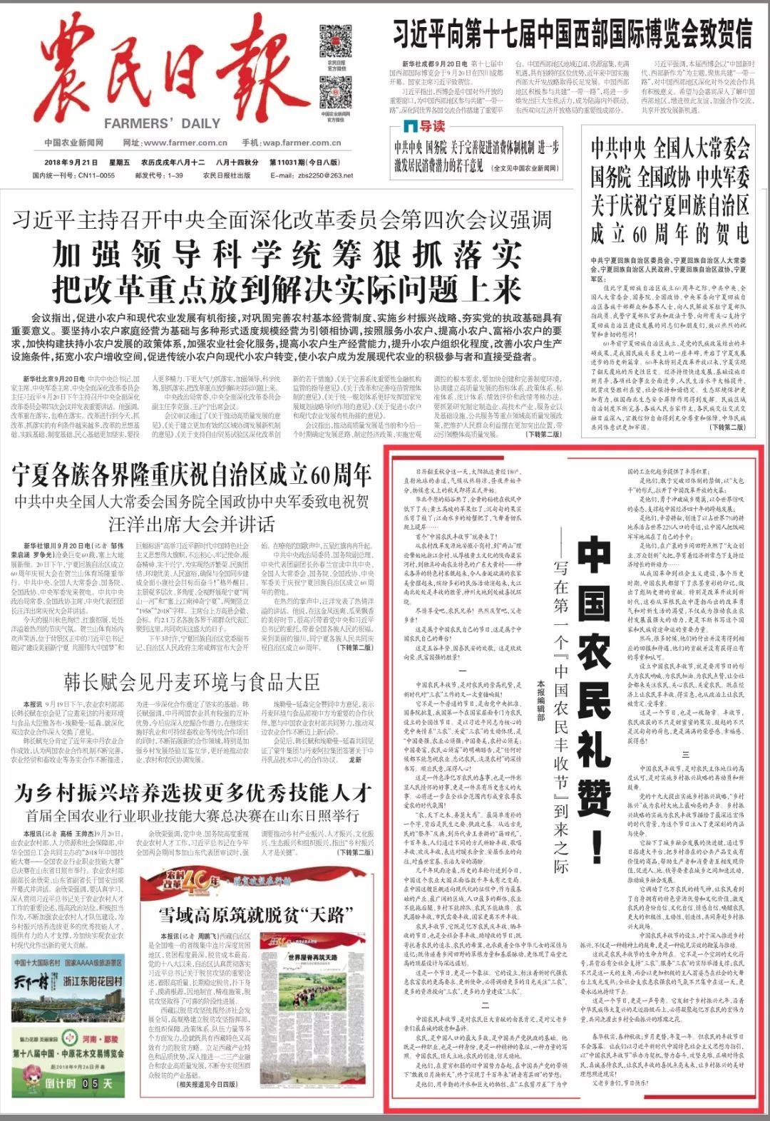 這是一件惠澤億萬農(nóng)民的喜事,也是一件彰顯人民情懷的好事,更是一件具有歷史意義的大事。必將進(jìn)一步在全社會(huì)范圍內(nèi)形成重農(nóng)尊農(nóng)愛農(nóng)的時(shí)代氛圍!