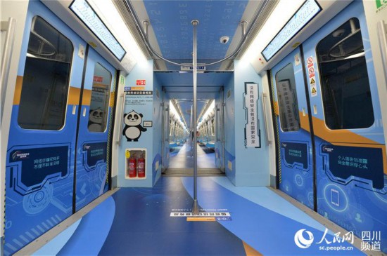 圖注:成都為2018年國(guó)家網(wǎng)絡(luò)安全宣傳周設(shè)計(jì)的地鐵主題列車(chē)“安安號(hào)”(攝影 王軍)