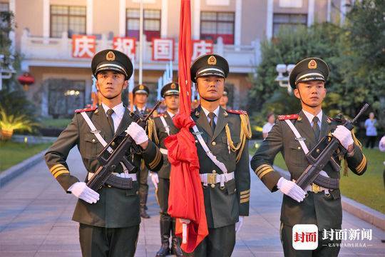 早上7點,伴隨著莊嚴的國歌聲,五星紅旗冉冉上升,飄揚在了成都天府廣場的上空。在眾多觀看升旗儀式的人群中,有一位女孩全程盯著國旗護衛隊的第一排。