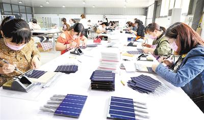 近日,魏縣德政鎮(zhèn)前小寨村扶貧微工廠工人正在檢驗(yàn)太陽(yáng)能板。魏縣立足留守婦女等半勞力多的實(shí)際,發(fā)展“扶貧微工廠”252家,帶動(dòng)建檔立卡人口就業(yè)6000余人。 記者 杜柏樺攝