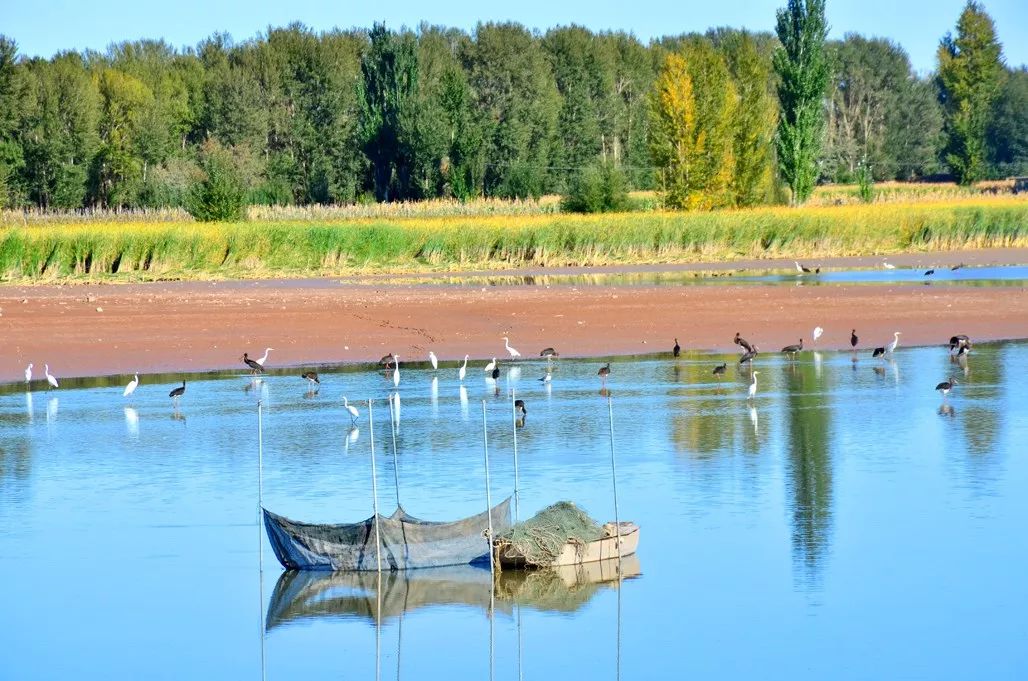 2018-10-01,甘肅張掖。碧水藍(lán)天,是鳥兒的天然樂園。作者:大碗茶