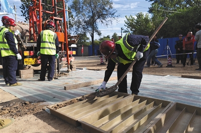 昨日(10日),故宮北院區(qū)施工現(xiàn)場(chǎng),工程人員勘探取巖芯。新京報(bào)記者 浦峰 攝