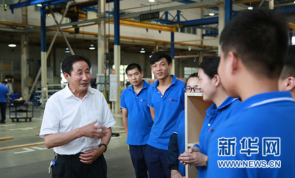 吳振祥(左)走進(jìn)企業(yè)車間班組,與職工面對面交談(資料照片)。 新華社發(fā)