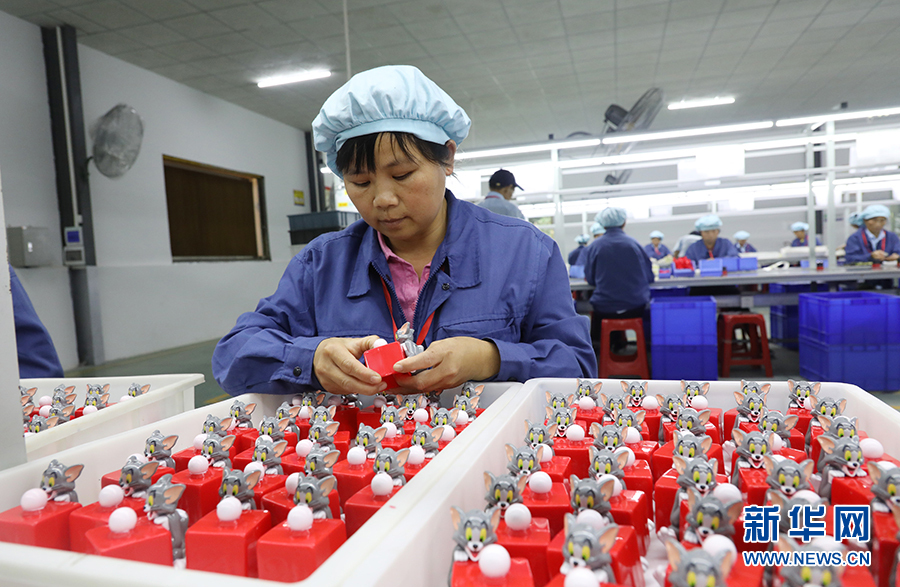 英德市連江口鎮連樟村扶貧工廠的工人在檢查玩具產品的質量。2017年村里通過產業扶貧引入企業落戶到村,讓村民實現了家門口就業(10月24日攝)。新華社記者王瑞平攝