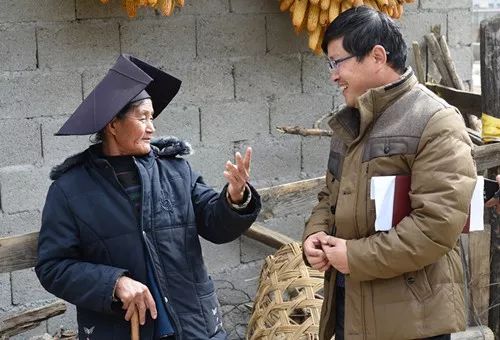 一位鄉鎮干部(右)在走訪村民 劉坤攝