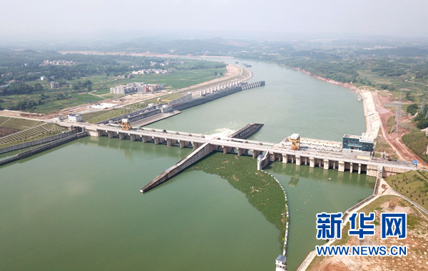 廣西南寧老口水利樞紐工程(5月18日無人機拍攝)。 新華社記者 周華 攝
