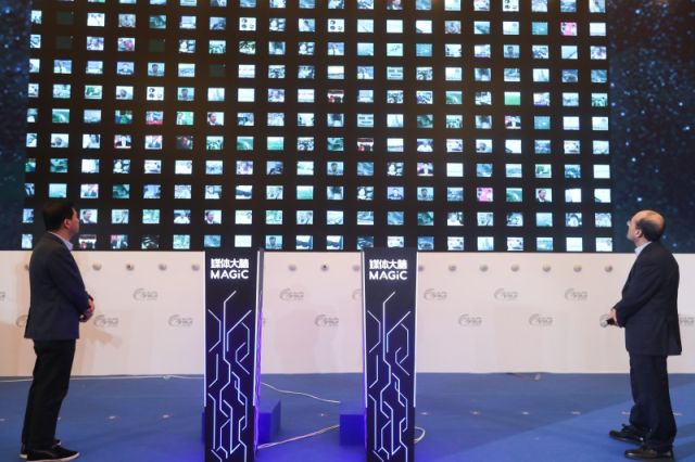 12月27日,在成都世紀(jì)城國際會議中心,新華社副社長、黨組成員劉思揚(右)和阿里巴巴集團(tuán)黨委書記、秘書長邵曉鋒共同出席 “媒體大腦·MAGIC短視頻智能生產(chǎn)平臺”發(fā)布。