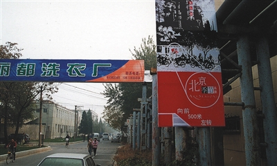 2004年8月15日,北京,798工廠。管道林立的廠房內豎滿了招牌。圖/視覺中國